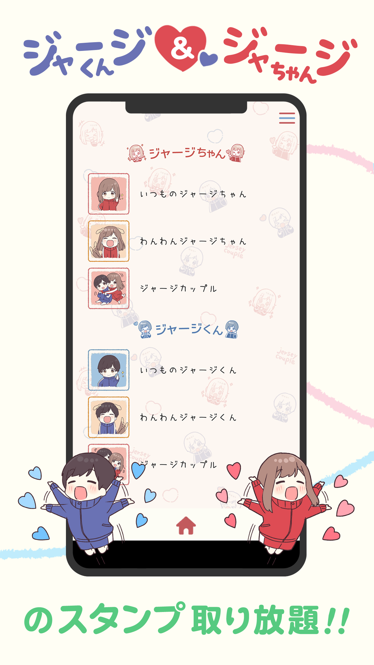 ジャージちゃん、ジャージくんのスタンプが取り放題!